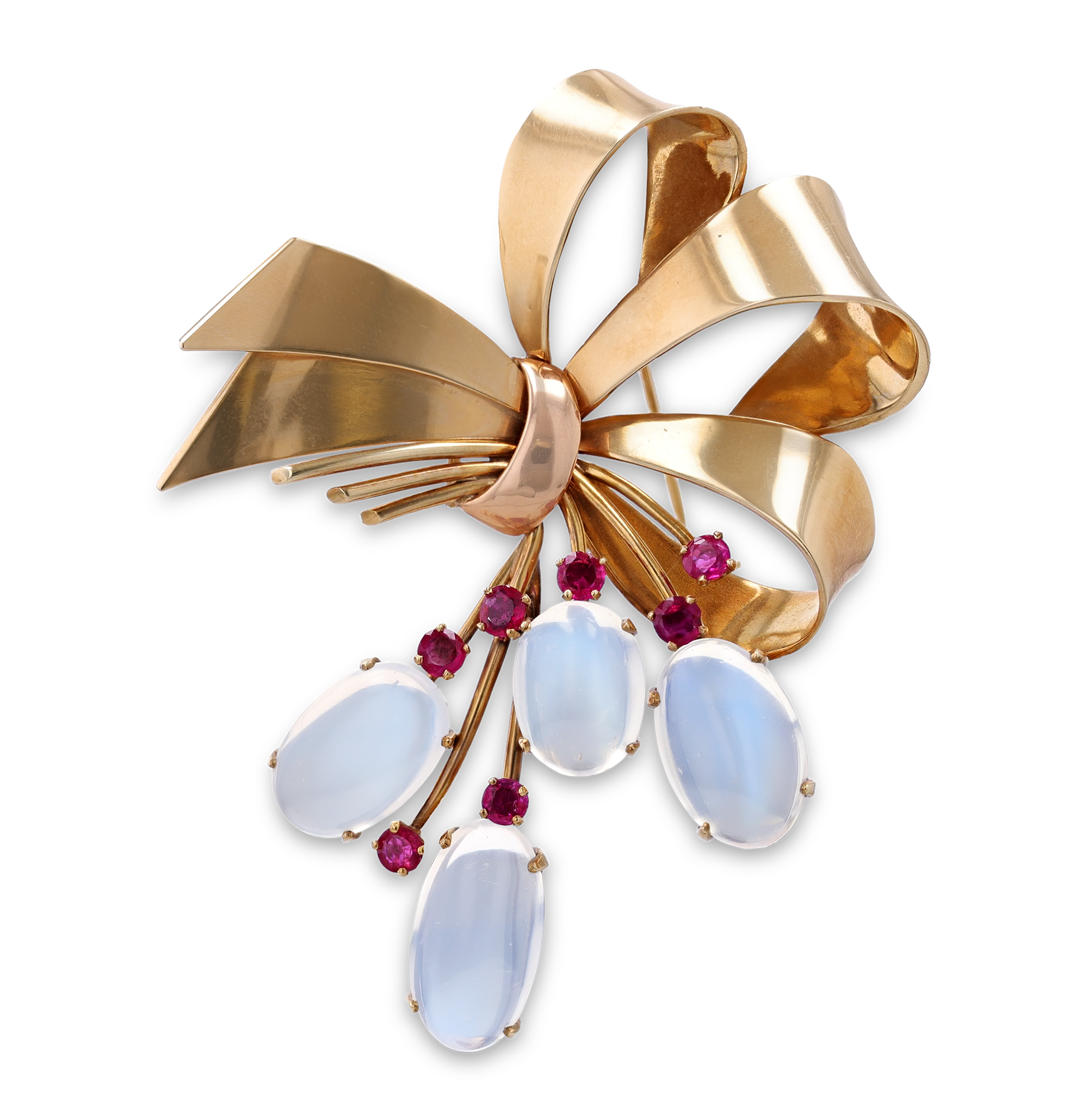 Learn MoreTiffany & Co. Moonstone and Ruby Bow Brooch