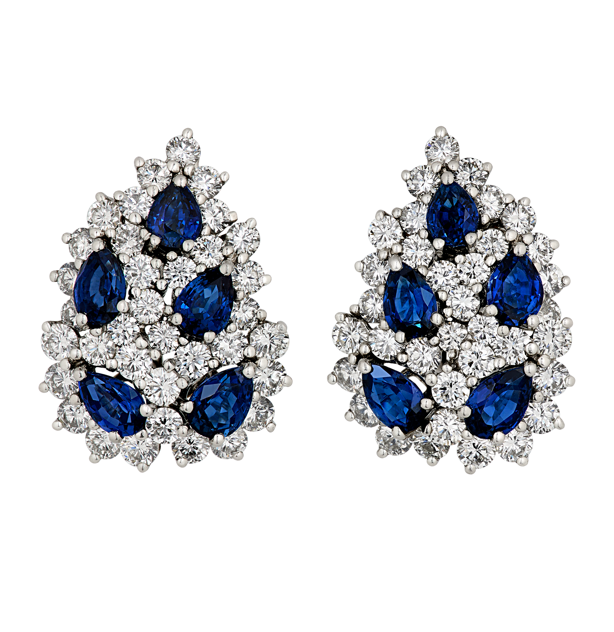 - This pair of earrings radiates with 10 pear shaped sapphires totaling 3.60 carats