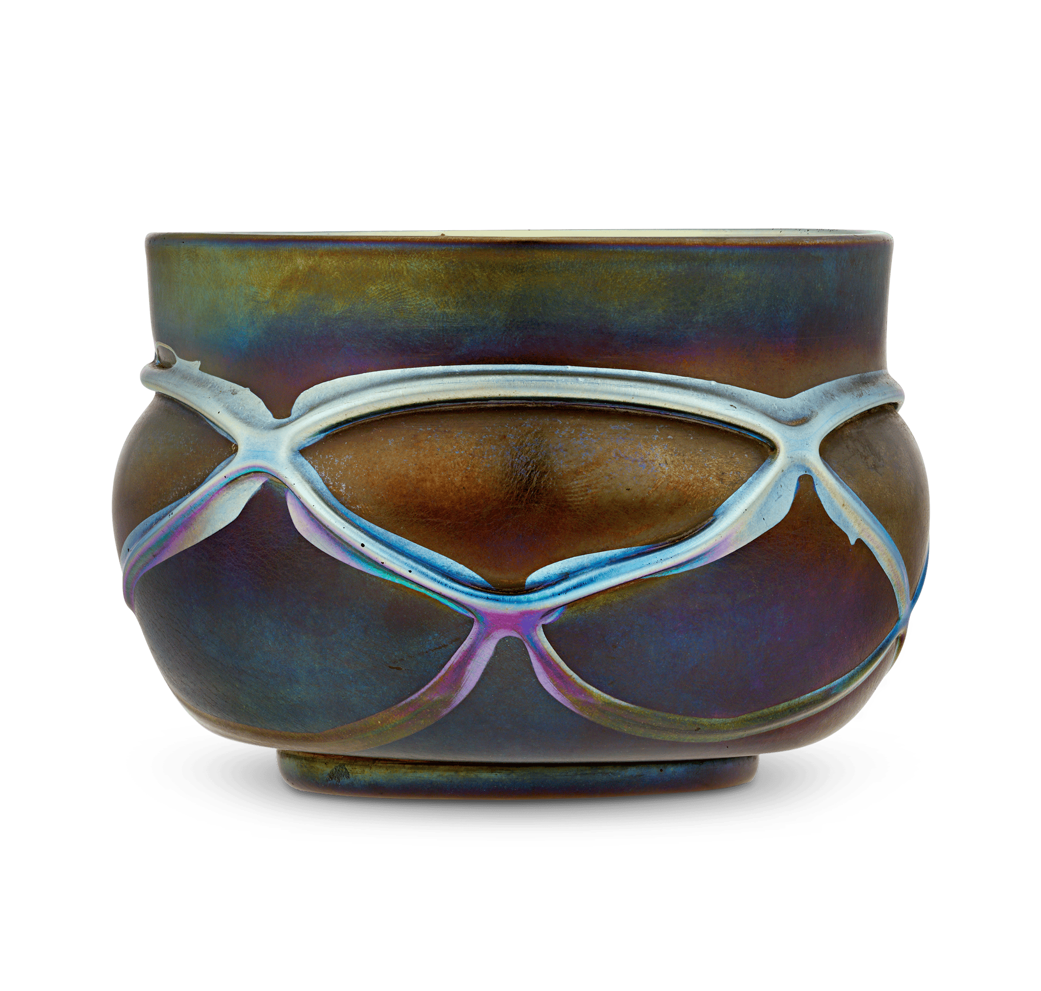 Louis Comfort Tiffany, son of Tiffany & Co. founder Charles Lewis Tiffany, revolutionized American decorative arts through his pioneering glasswork. Inspired by ancient Roman glass unearthed with iridescent patinas, he developed Favrile glass in the 1890s—a technique that introduced color into the molten glass itself, rather than being painted on. Tiffany was the first American designer to receive the grand prize at the 1900 Paris Exposition. His glass creations are housed in major museum collections, including The Metropolitan Museum of Art.