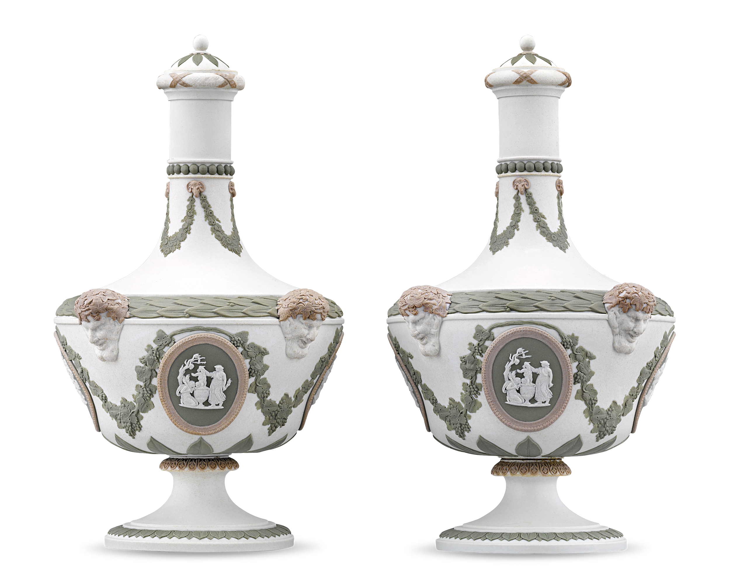 - Wedgwood's classical elegance is showcased in this rare pair of tricolor jasperware barber bottles