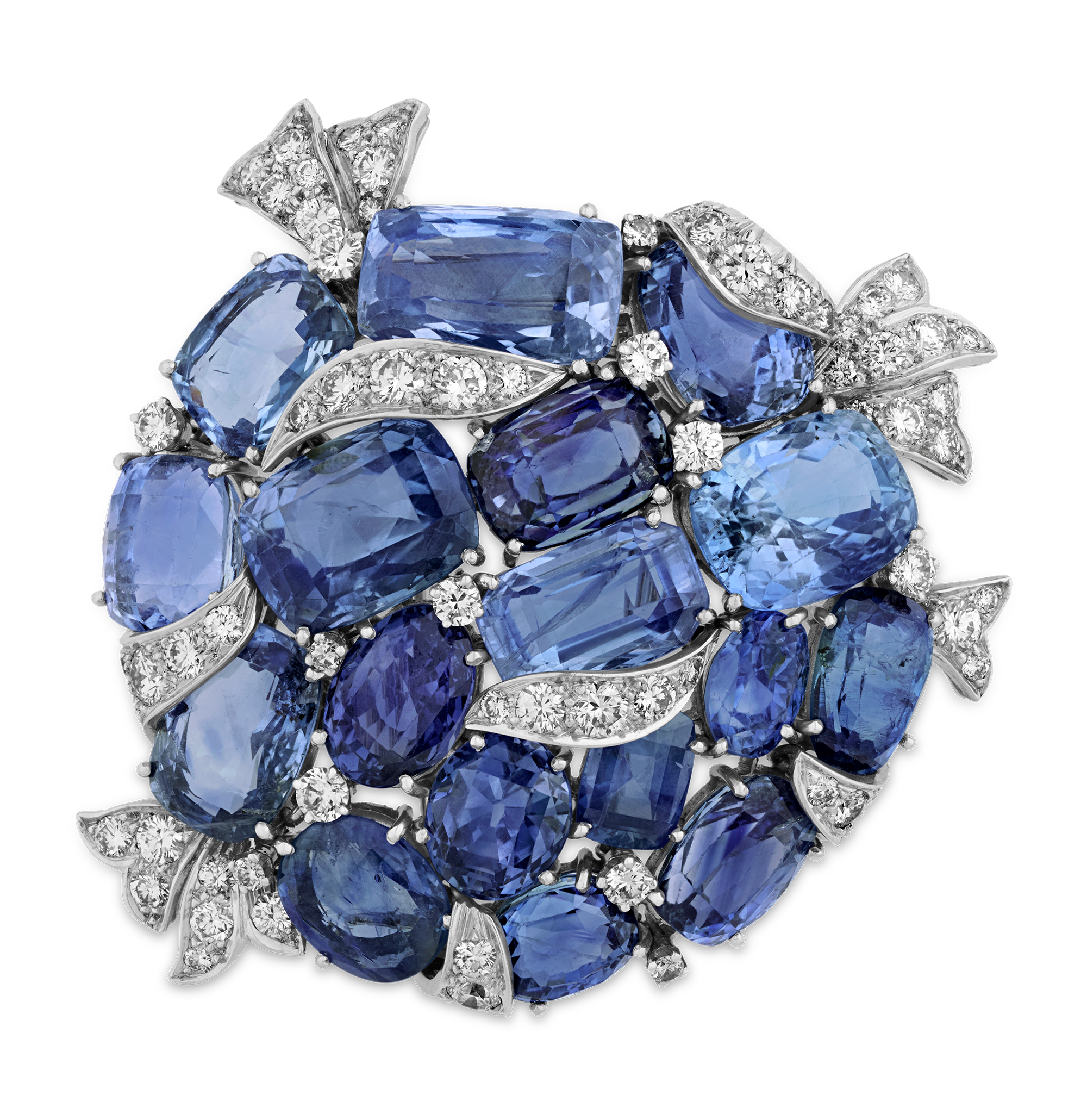 - This Verdura brooch features an astounding 100.00 carats of vivid blue unheated Ceylon sapphires