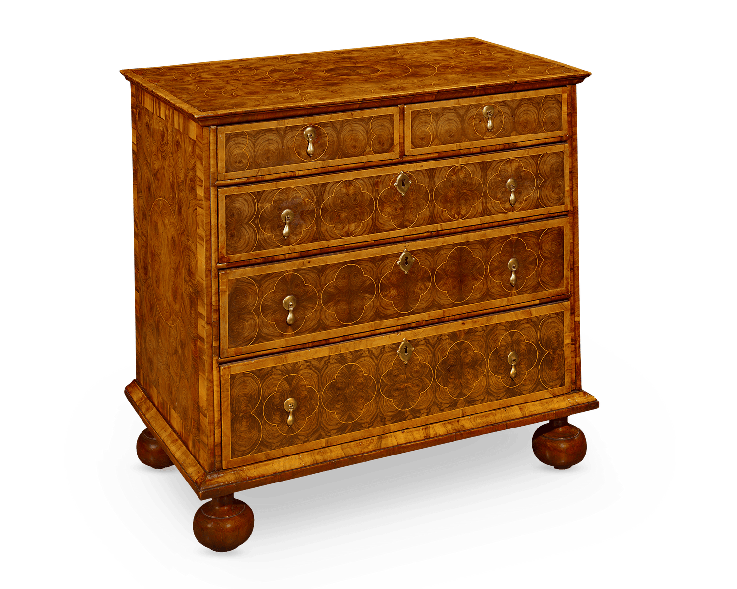 - This William and Mary-period chest beautifully illustrates the art of oyster veneering