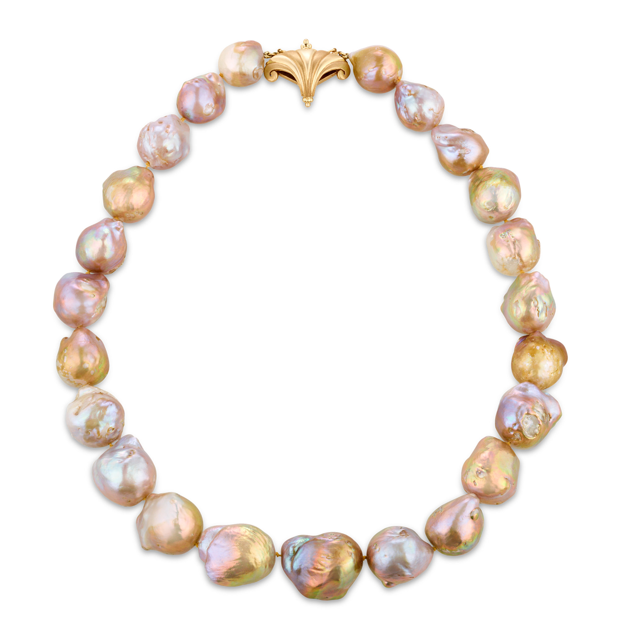 - These iridescent Baroque pearls are called "fireball pearls" for their captivating color